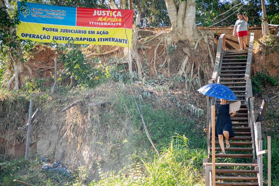 Na região ribeirinha de Porto Velho os caminhos para a garantia de direitos passam por rios, pontes e escadas sob barrancos. O trajeto da Justiça Rápida Itinerante pelo Rio Madeira começou em Porto Velho na última quarta-feira, 19 de junho. Depois de 9 horas de viagem, o barco da Justiça aportou no distrito de Calama. Na chegada, o que se viu foi a satisfação da população em encontrar soluções para suas demandas.