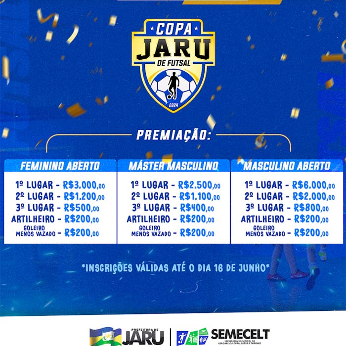 O campeonato é promovido pela prefeitura de Jaru e organizado pela Semecelt e neste ano, contará com quase R$ 19 mil em premiação.