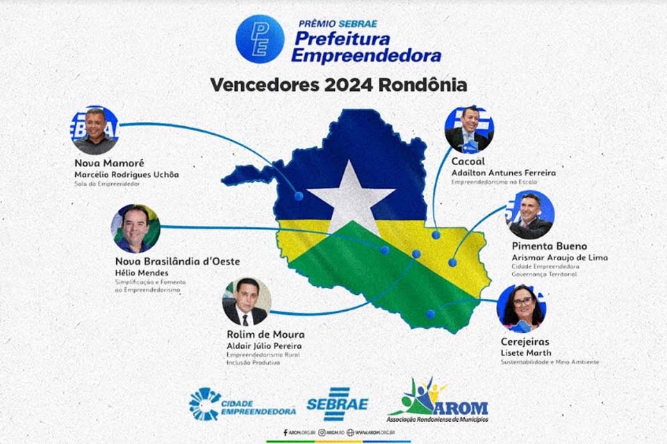 Vencedores do Prêmio Sebrae Prefeitura Empreendedora em Rondônia: