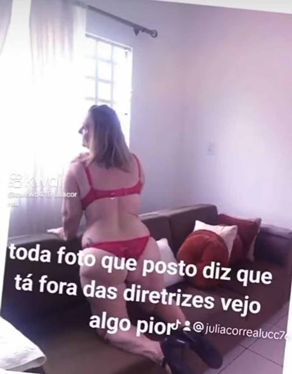 "Toda foto que posto, diz que está fora das diretrizes. Vejo algo pior", reclamou ela na postagem.