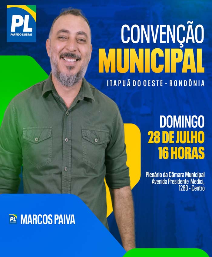 O PL de Itapuã do Oeste estará realizando convenção municipal no próximo domingo (28), quando serão definidos os candidatos a prefeito, vice e vereador para as eleições municipais de outubro. O atual prefeito, Moisés Cavalheiro (MDB) está no segundo mandato e não estará na disputa, mas trabalha a pré-candidatura do secretário municipal de Planejamento, Marcos Paiva, do PL, em parceria com outros partidos.