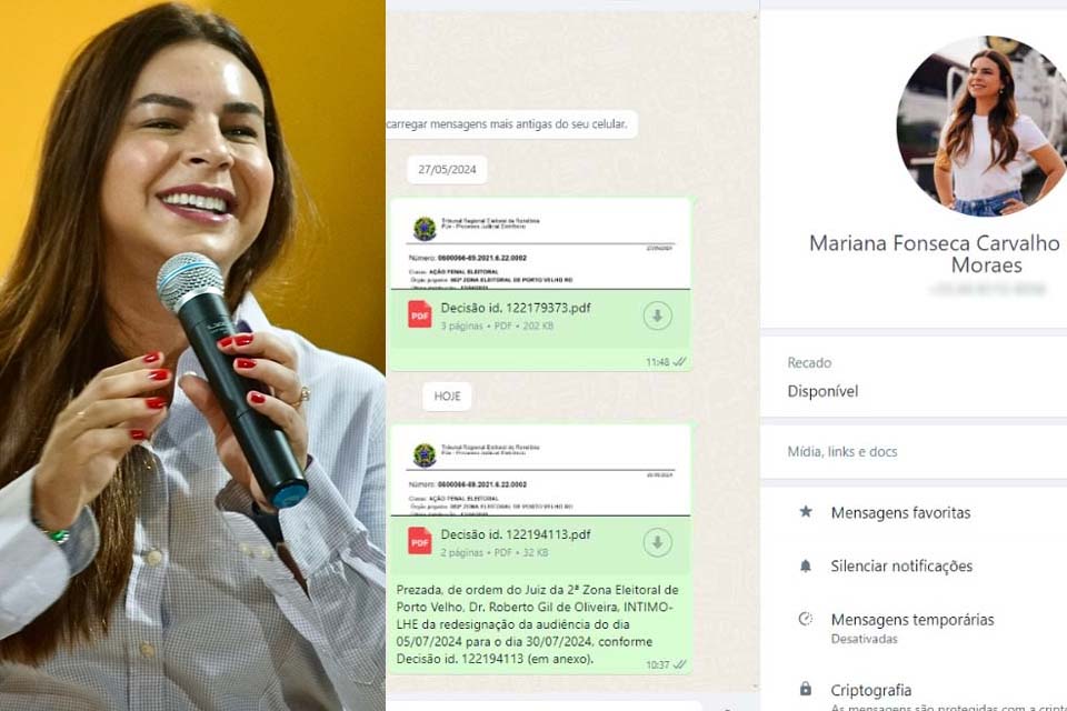 Mariana Carvalho, que se prepara para concorrer à Prefeitura de Porto Velho pelo União Brasil, aguarda a realização da audiência para apresentar sua defesa perante a Justiça Eleitoral.