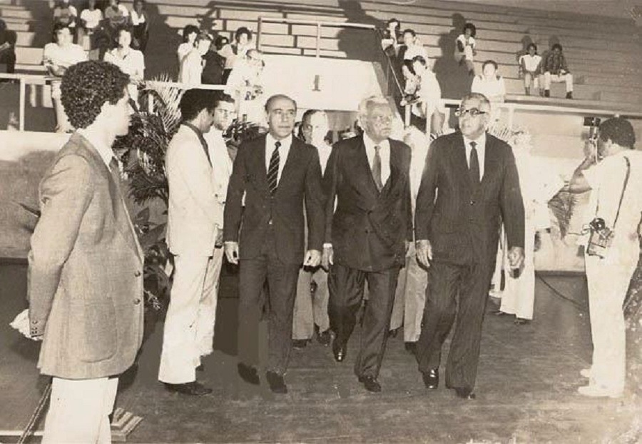 Marcada para 17hs, Teixeira chegou um pouco depois, acompanhado pelos ministros, da Justiça Abi Ackel, representando o presidente João Figueiredo, e do Interior, Mário Andreazza.