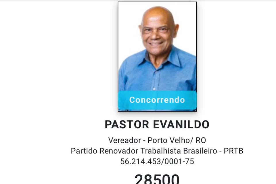 Em mais um passo decisivo para as eleições municipais de 2024, o Pastor Evanildo Ferreira, do Partido Renovador Trabalhista Brasileiro (PRTB), teve sua candidatura a vereador deferida pela Justiça Eleitoral. A decisão confirma a elegibilidade do candidato, permitindo que ele continue sua campanha em busca de uma cadeira na Câmara Municipal de Porto Velho.