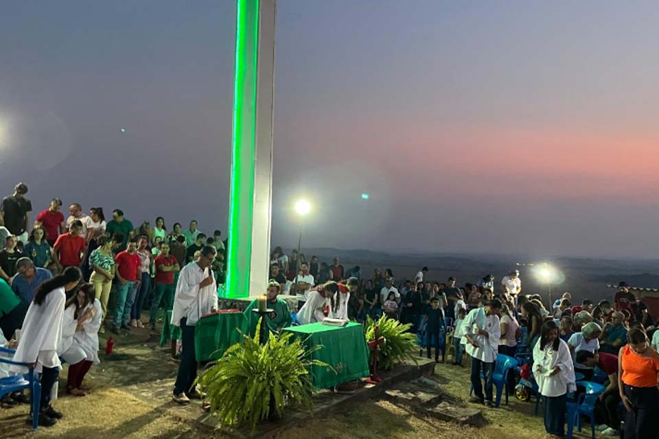 Uma celebração realizada na noite deste domingo (04) no Cruzeiro do Morro Chico Lana, em Jaru, reuniu centenas de fiéis. Apesar de ter acesso de veículos, grande parte dos fieis optou por subir a pé o íngreme morro como forma de penitência.