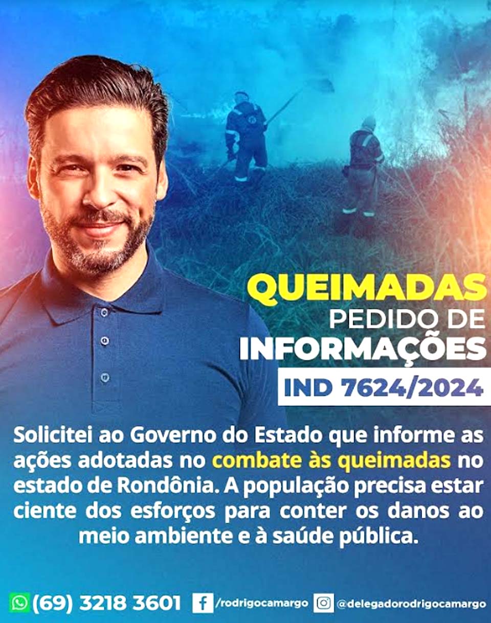 “A população precisa saber o que o poder público tem feito para combater as queimadas ilegais em Rondônia, cuja fumaça tem causado danos à saúde pública em todo o estado. Precisamos saber se existe alguma parceria do governo com outros órgãos, para fortalecimento das ações de combate e prevenção às queimadas e o volume de recursos financeiros alocados e investimentos pelo governo para o enfrentamento das queimadas, incluindo a verificação de sua aplicação e resultados obtidos”, concluiu Camargo.