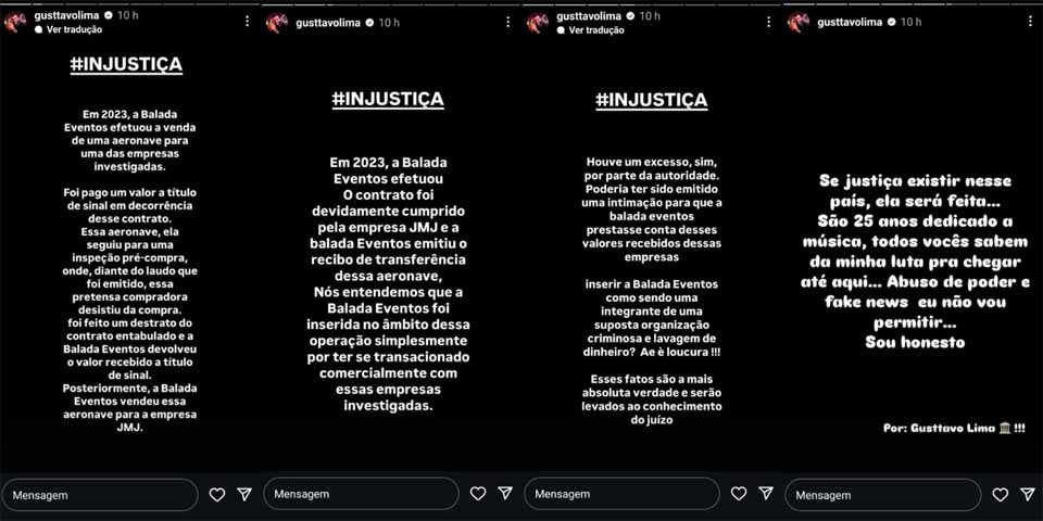 Após exibição da reportagem, o cantor utilizou as redes sociais para se pronunciar e descreveu a associação do seu nome e da sua empresa ao esquema como "abuso de poder" e "fake news". "Se a justiça existir nesse país, ela será feita... São 25 anos dedicado (sic) à música, todos vocês sabem da minha luta para chegar até aqui... Abuso de poder e fake news eu não vou permitir... Sou honesto", escreveu o cantor.