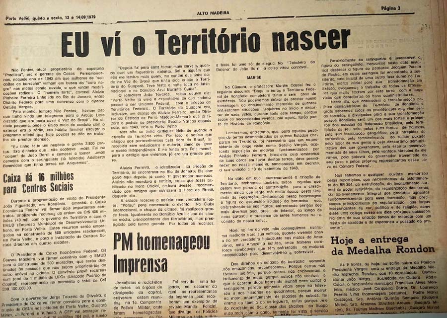 Dois testemunhos no jornal Alto Madeira (Pág 3, dia 13.9.79):