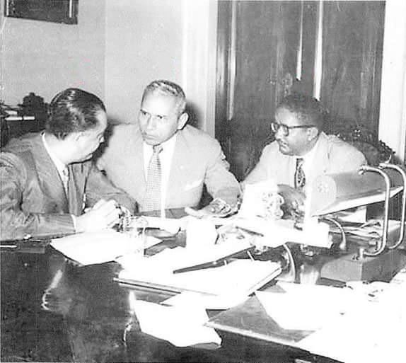 Eleito em 1954, o deputado Joaquim Rondon, ao centro, em audiência com o presidente JK e o prefeito de Porto Velho Renato Medeiros.