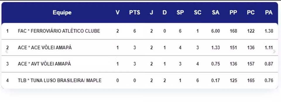 O Ferroviário segue com 100% de aproveitamento na Superliga C de voleibol e assumiu a liderança da chave Norte, que está sendo disputada em Macapá. A equipe rondoniense superou o ACE por 3 sets a 1, com parciais de 25/18, 11/25, 20/25 e 20/25.
