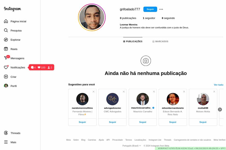Porto Velho, RO – Em decisão liminar recente da juíza da 20ª Zona Eleitoral, Juliana Paula Silva da Costa, o perfil no Instagram “grifoalado777” (com apenas 2 seguidores e nenhuma publicação), que teoricamente pertence a Leomar Moreira, deve ter os dados divulgados pelo Facebook (responsável pelo Instagram).