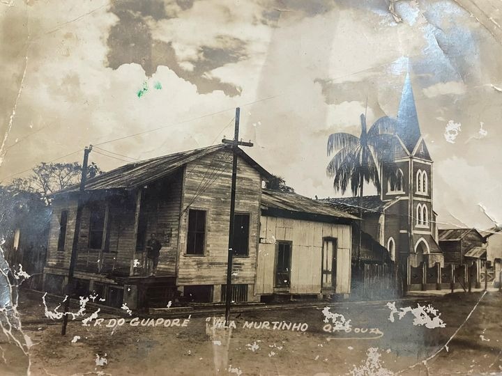 A partir da extinção da EFMM, e da construção de uma nova cidade à beira da BR-425 (Nova Mamoré), Vila Murtinho foi definhando. Simon Oliveira explica a foto: À direita, ao fundo, a igreja de Santa Terezinha, padroeira da vila – em Nova Mamoré o padroeiro é São Francisco de Assis.