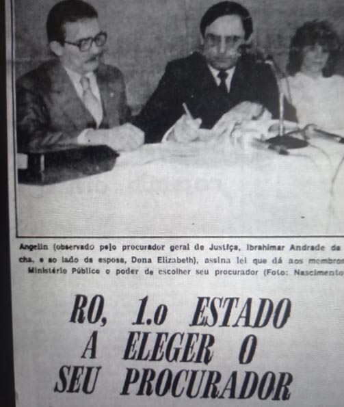 1985 – Autorizado pela Constituinte de 1983, o governador Angelo Angelin assina a lei pela qual o MP de Rondônia será o 1º em todo o país a eleger seu procurador-geral. VER em Foto do dia