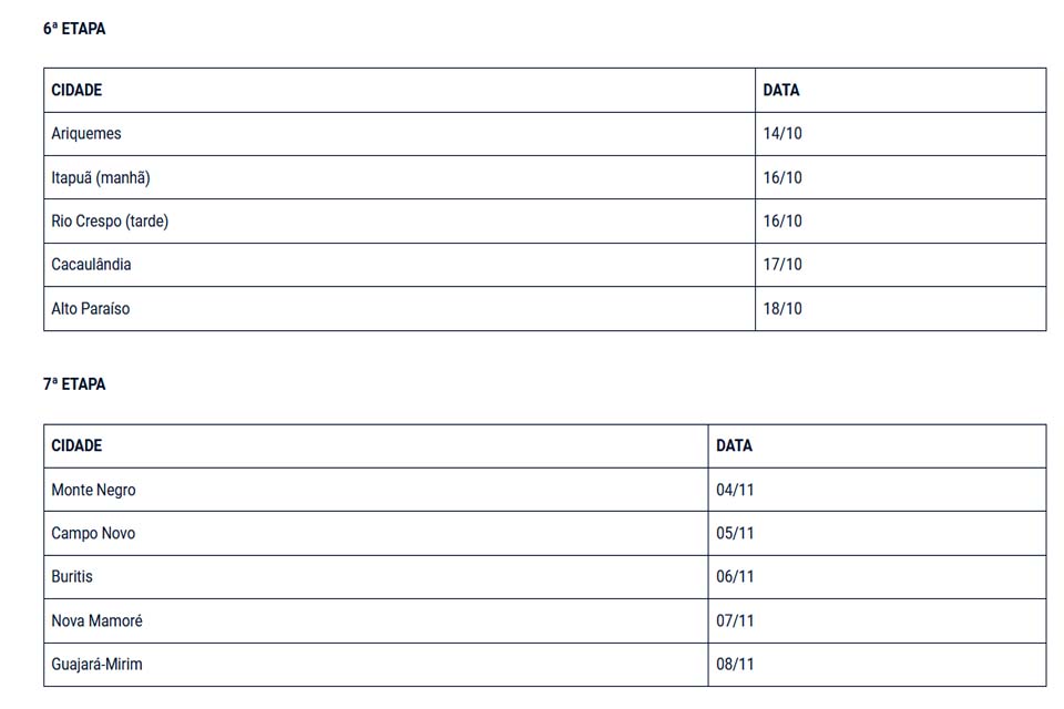 CONFIRA A PROGRAMAÇÃO DAS ETAPAS
