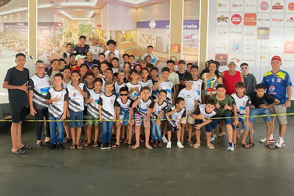 Cerca de 50 garotos da WS Furação (Escola de Futebol WS Associação Cultural, Social e Desportiva de Jaru), acompanhados dos professores, pais, conselheira Tutelar Lucineia Souza da Silva e assistente Social Maria das Dores, a Dorinha, passaram o dia no último sábado (28) na cidade de Ji-Paraná, participando das atividades proposta do Projeto Despertando a Responsabilidade Social, através da cultura, esporte e lazer.