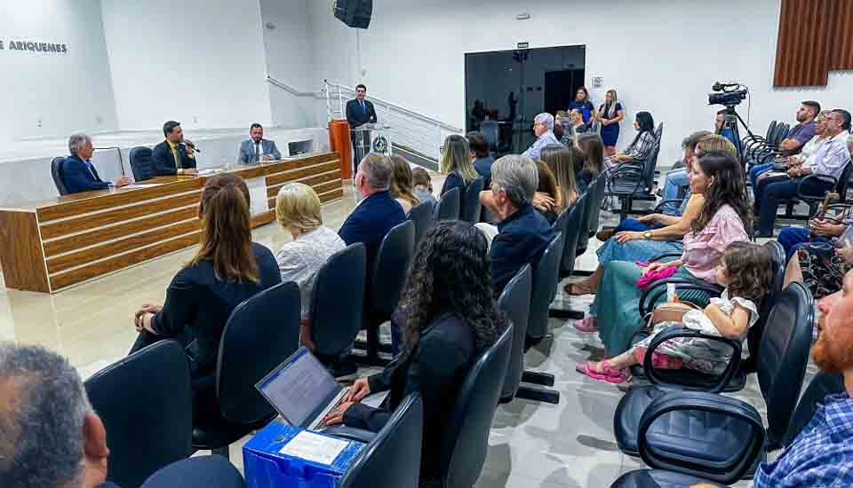 Empresários de Ariquemes receberam votos de louvor e o título de cidadão honorário durante uma sessão solene da Assembleia Legislativa de Rondônia (Alero). A cerimônia ocorreu na noite de sexta-feira (22), no auditório da Associação Comercial e Industrial de Ariquemes (Acia). A homenagem foi proposta pelo deputado Delegado Camargo (Republicanos).
