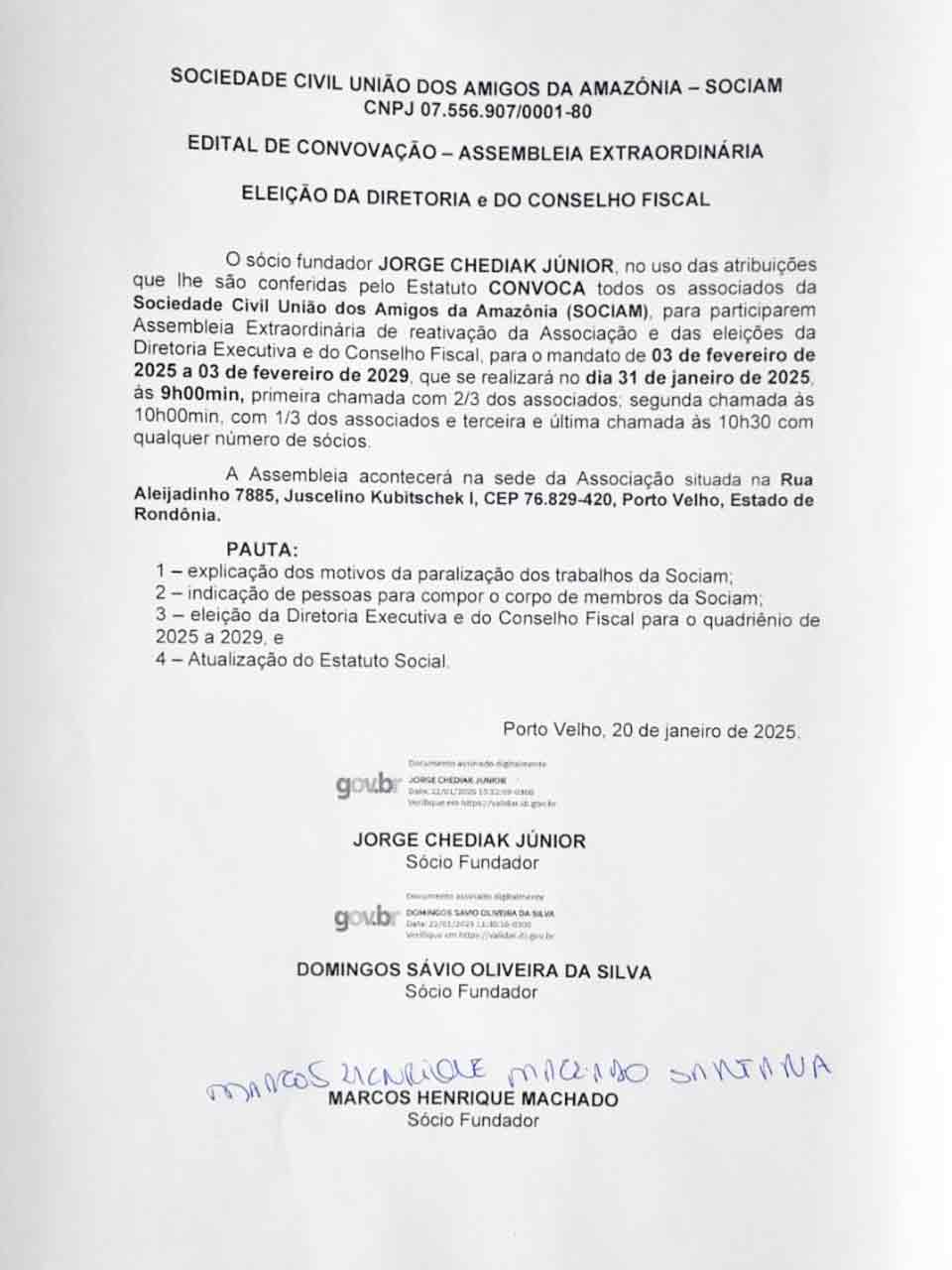 Edital de Convocação - Sociedade Civil União dos Amigos da Amazônia (SOCIAM)