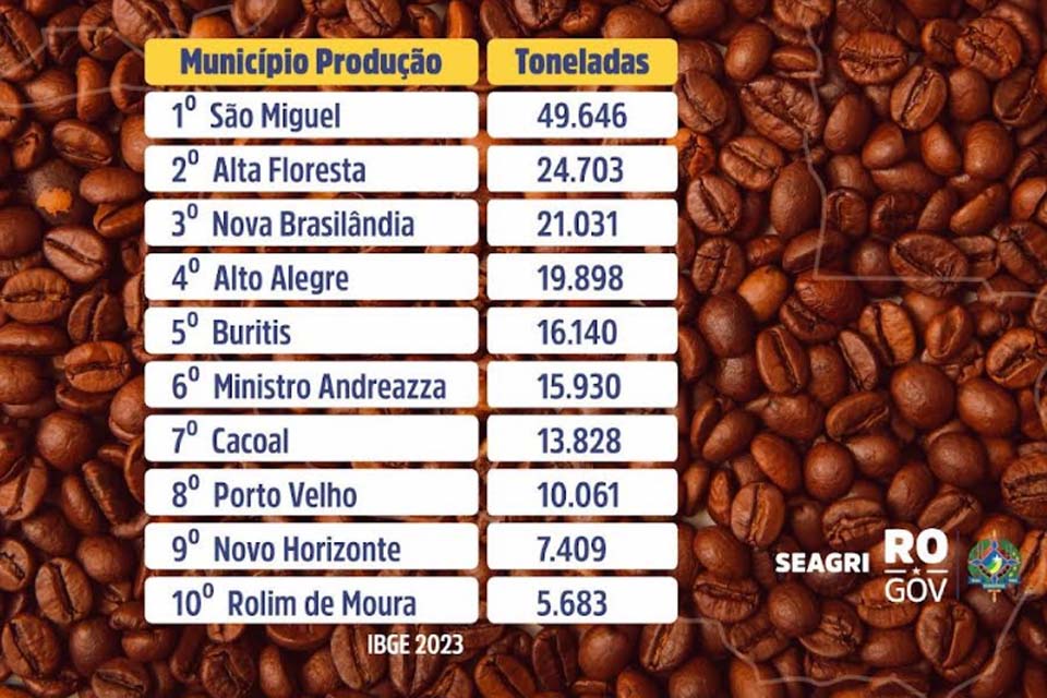 Rondônia se consolida como um dos maiores produtores de café do Brasil, com uma forte presença de pequenos e médios produtores em diversas regiões do estado. Cidades como São Miguel do Guaporé, Alta Floresta d’Oeste, Nova Brasilândia d’Oeste, Alto Alegre dos Parecis, Buritis, Ministro Andreazza e Cacoal são os principais responsáveis pela produção do grão, que se tornou uma das principais fontes de renda e desenvolvimento local. Os municípios têm mostrado grande potencial de crescimento, com melhorias nas práticas agrícolas.