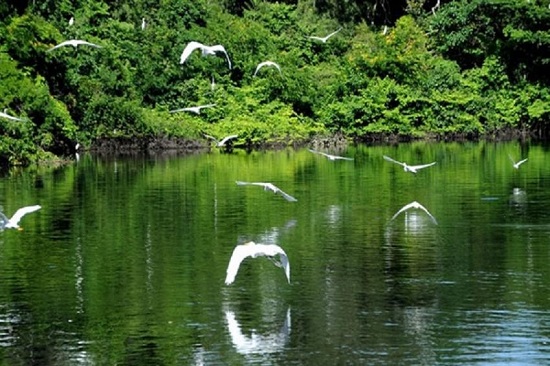 O Cuniã é um lago cercado pela floresta, com milhares de pássaros, botos cor-de-rosa, jacarés, e muito pirarucu, que só pode ser pescado com uso de arpões, conforme a lei federal.