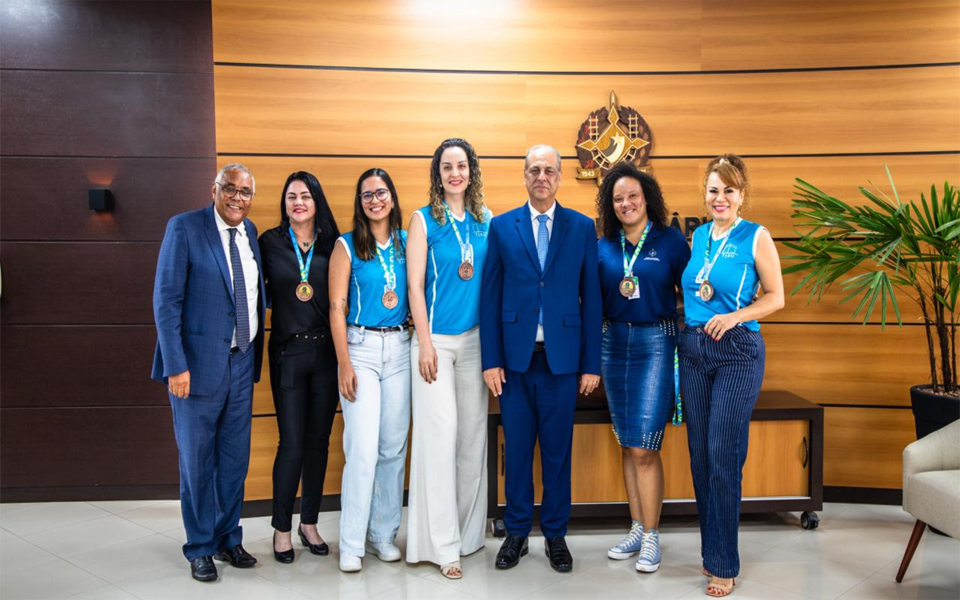 O time feminino de vôlei do TJRO foi homenageado pelo presidente do Tribunal em seu gabinete, em reconhecimento ao feito histórico e ao desempenho das servidoras.