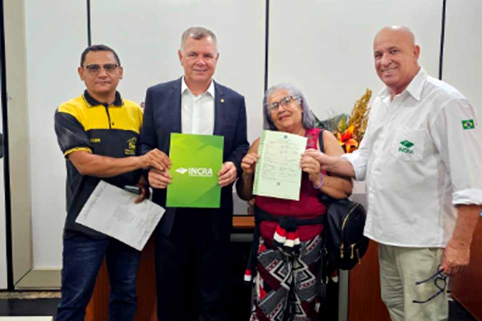 Ao lado do superintendente do INCRA em Rondônia, Luís Flávio, o deputado destacou a importância desse momento, ressaltando que a regularização fundiária representa dignidade e segurança para as famílias beneficiadas.
