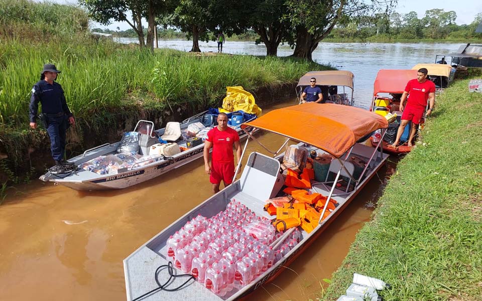 Com objetivo de mitigar os efeitos das enchentes que atingem diversas regiões de Rondônia, o governador Marcos Rocha demandou a entrega de 158 cestas básicas para as comunidades das reservas extrativistas Rio Cautário e Serra Grande, em Costa Marques, além da distribuição de fardos de água potável, somando 20.400 litros, para famílias que enfrentam grandes dificuldades devido ao aumento do nível do Rio Madeira, que atingiu na terça-feira (25), 16.32 metros, conforme boletim da Superintendência de Operações e Eventos Críticos da Agência Nacional de Águas (ANA) nesta terça-feira, 25.