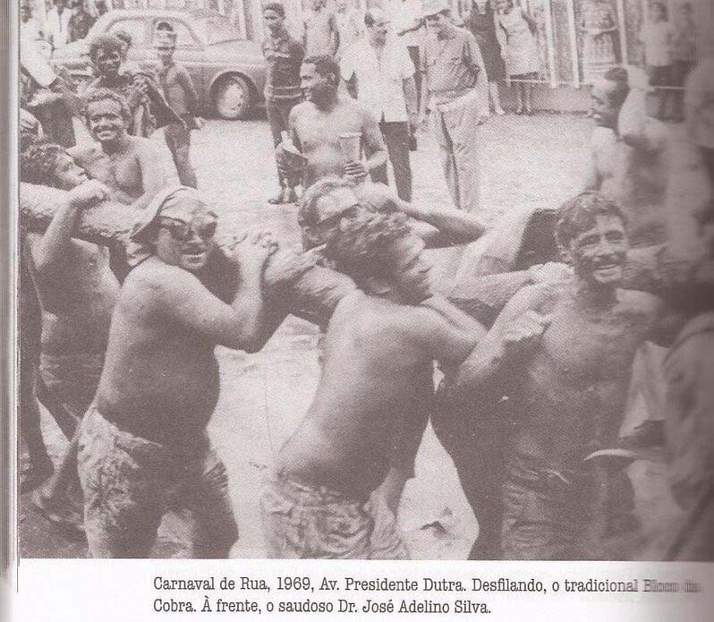 Todos sujos – o melhor seria “imundos” – eles foram a grande atração do desfile, e daí em diante, todos os carnavais eles vinham, tropeçando de tanta bebida. Eram os “cobreiros”, do “bloco da cobra”.