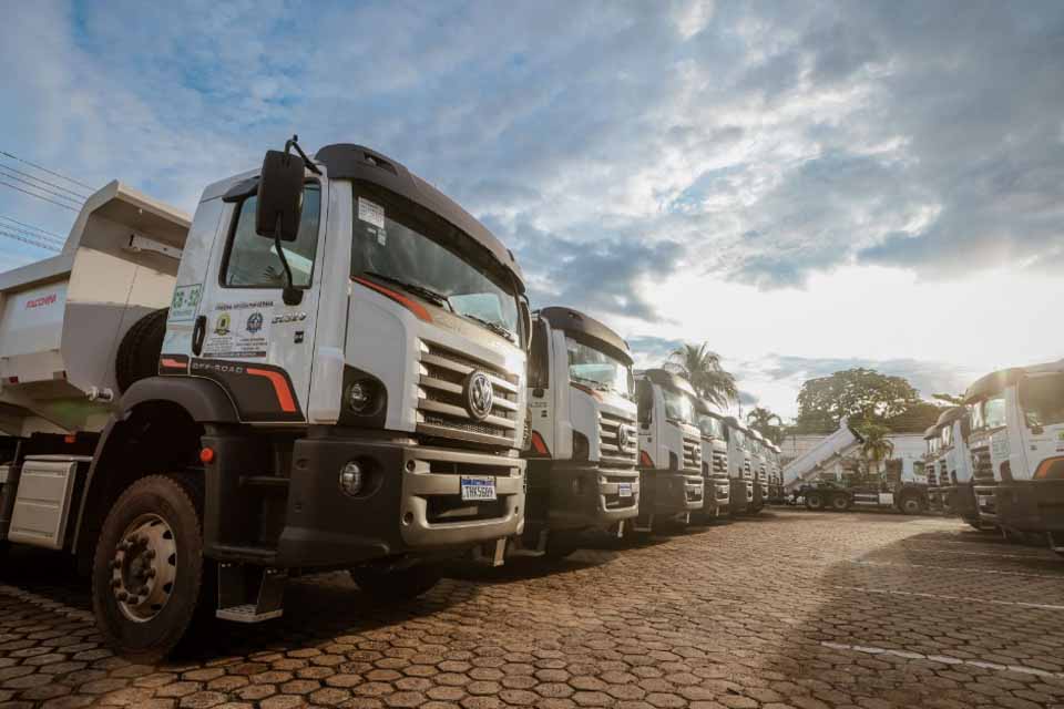 Os 12 caminhões basculhantes foram entregues pelo prefeito Léo Moraes no último dia 13, com a finalidade de proporcionar mais benefícios para os produtores rurais da capital.