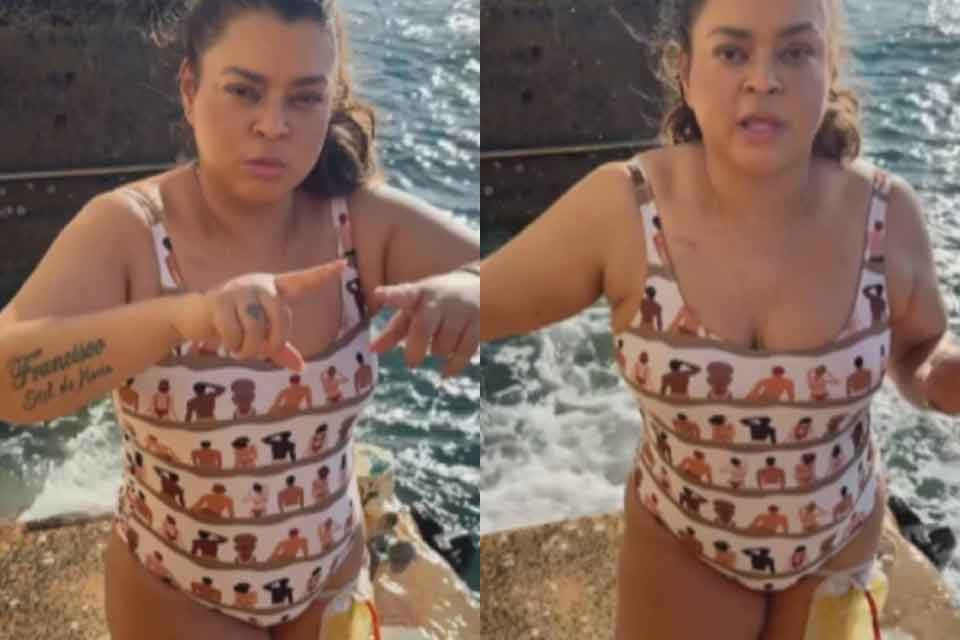 Após receber autorização médica, a cantora foi até um píer em Salvador, na Bahia, para dar um mergulho e agradecer. “Tem uma cicatriz no bumbum muito grande, e os pontos abriram, como já contei, mas estão fechando”, inicia.