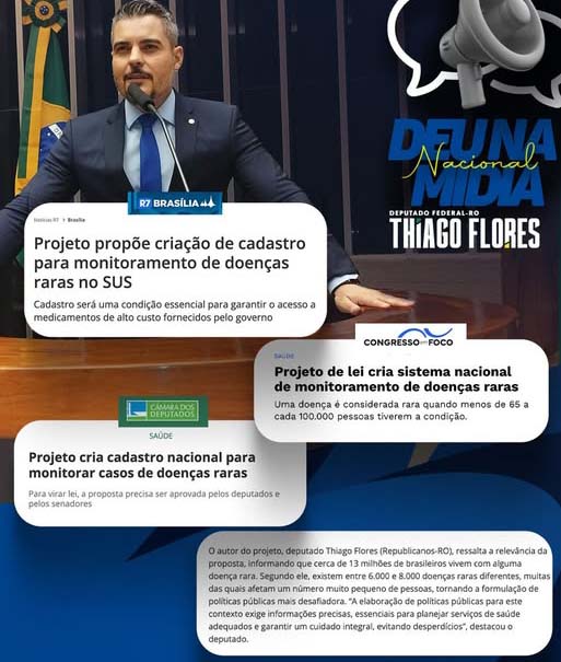 Nosso Projeto de Lei 109/2025, que propõe a criação de um cadastro para monitoramento de doenças raras no SUS, ganhou destaque nos principais veículos de comunicação do país!