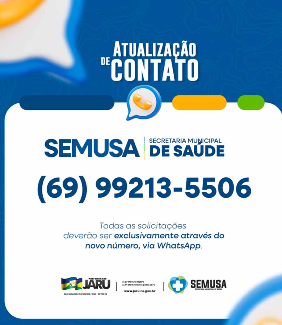 A Secretaria Municipal de Saúde – Semusa, atualizou o telefone destinado ao atendimento ao público.