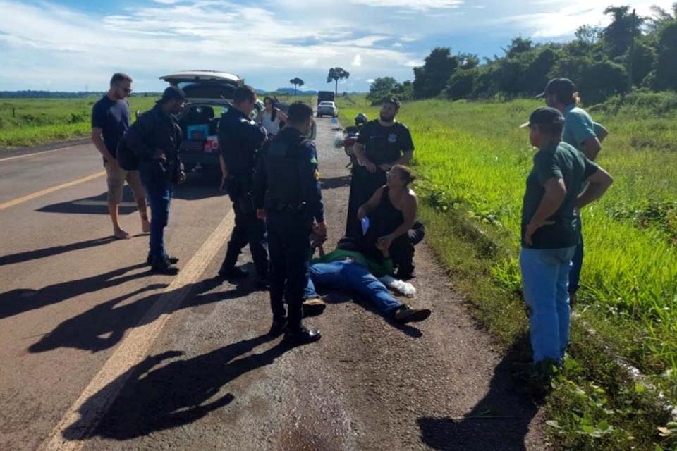 A equipe policial realizou a sinalização do local para evitar novos acidentes e acionou os serviços de emergência médica, que prestaram os primeiros socorros. A Polícia Rodoviária Federal foi acionada, mas não compareceu. As vítimas foram encaminhadas ao Hospital Municipal para avaliação, com prioridade para o motociclista, que apresentava lesões mais graves.