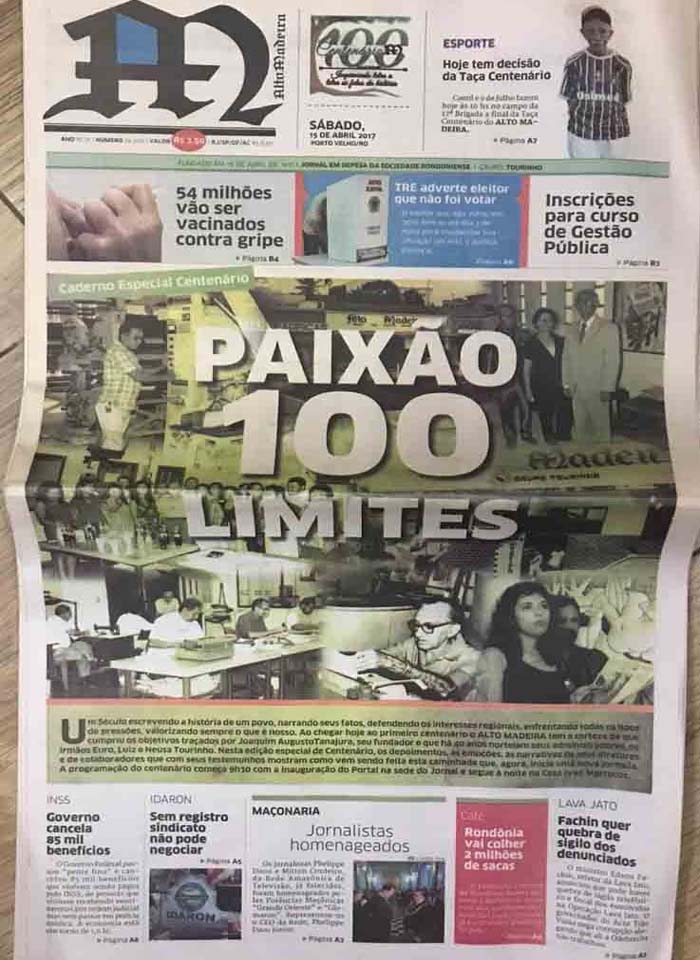 2017 – Circula, tendo como manchete principal “Paixão 100 Limites”, a edição de centenário do Jornal Alto Madeira.
