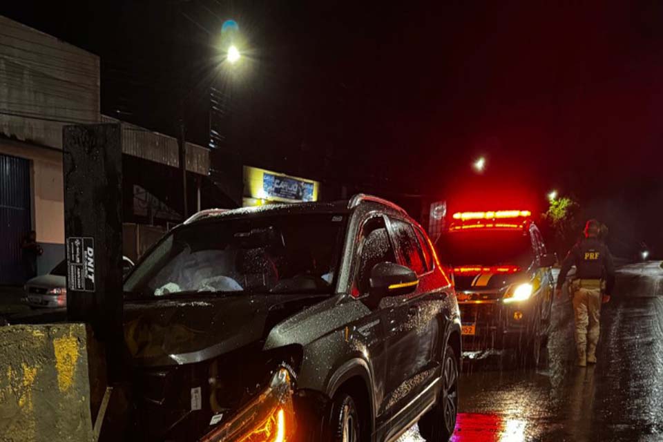 Na noite desta sexta-feira (11), um veículo SUV colidiu com uma mureta de concreto no retorno da BR-364, em frente ao Café Rio Brilhante, no perímetro urbano de Jaru.