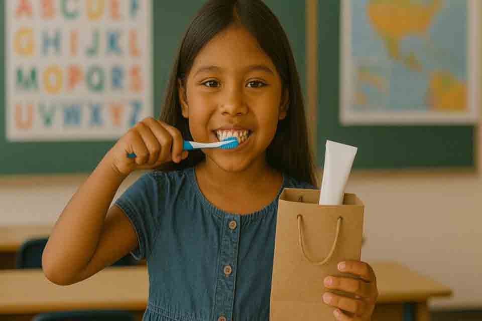 Ainda segundo ele, a composição de tais kits apenas com os itens essenciais contemplados em outros modelos (escovas, creme dental, fio dental e bolsa plástica) se mostra mais econômico e propicia maior número de crianças atendidas ou atendidas mais vezes durante o ano e com menos recursos.