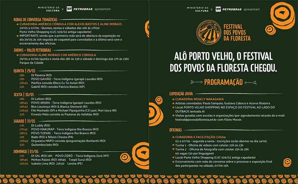 “Participar do Festival dos Povos da Floresta será uma honra, pois estarei ocupando um espaço entre os povos originários e cantar a Amazônia junto com eles é um privilégio. Dividir o palco que será do Lenine, Nilson Chaves e Patrícia Bastos é a realização de um sonho, pois tenho muito admiração pela poesia e música desses compositores que são reconhecidos, será um privilégio sem dúvida”, disse a artista.