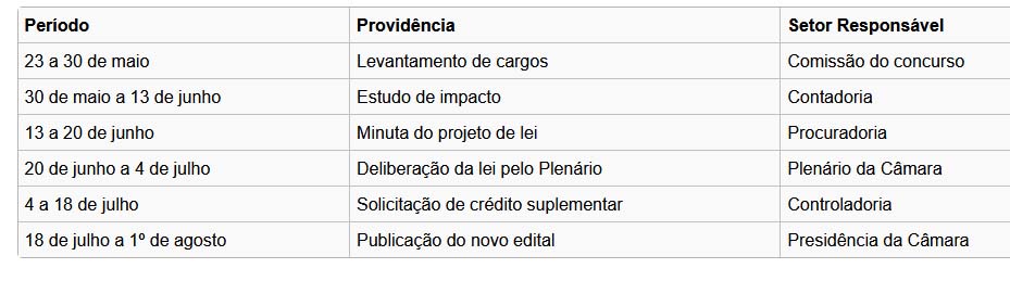 A Procuradora-Geral da Câmara, Cristiane Pavin, comprometeu-se a encaminhar todas as informações solicitadas no prazo estipulado. Desse modo, o MPRO recebeu, na última sexta (23), o seguinte cronograma, que deverá ser rigorosamente cumprido: