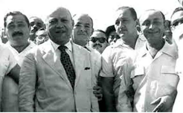 F. Aluízio Ferreira (único de gravata) recebido no aeroporto do “Caiari” iniciando a campanha de reeleição em 1954, que ele perdeu.