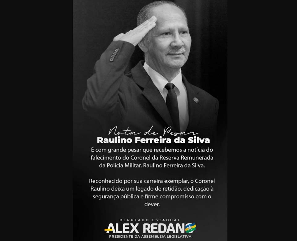 É com profundo pesar que a Presidência da Assembleia Legislativa do Estado de Rondônia recebe a notícia do falecimento, ocorrido nesta data, do Coronel da Reserva Remunerada da Polícia Militar, Raulino Ferreira da Silva, que exercia atualmente a função de secretário executivo do Governo Marcos Rocha.