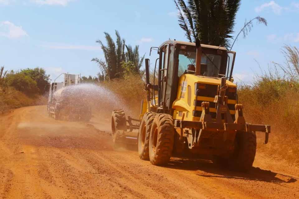 As frentes de trabalho contam com o apoio de máquinas pesadas, incluindo motoniveladora, retroescavadeira, pá carregadeira e caminhões basculantes, que estão sendo fundamentais para a execução dos serviços com agilidade e qualidade.