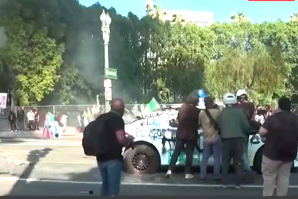 O confronto começou quando centenas de pessoas protestavam em frente a uma prisão no centro de Los Angeles, segundo a agência de notícias Associated Press (AP).