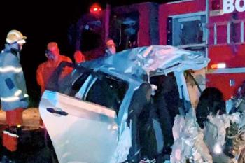 No veículo estavam três pessoas: duas mulheres e um homem, que conduzia a caminhonete.