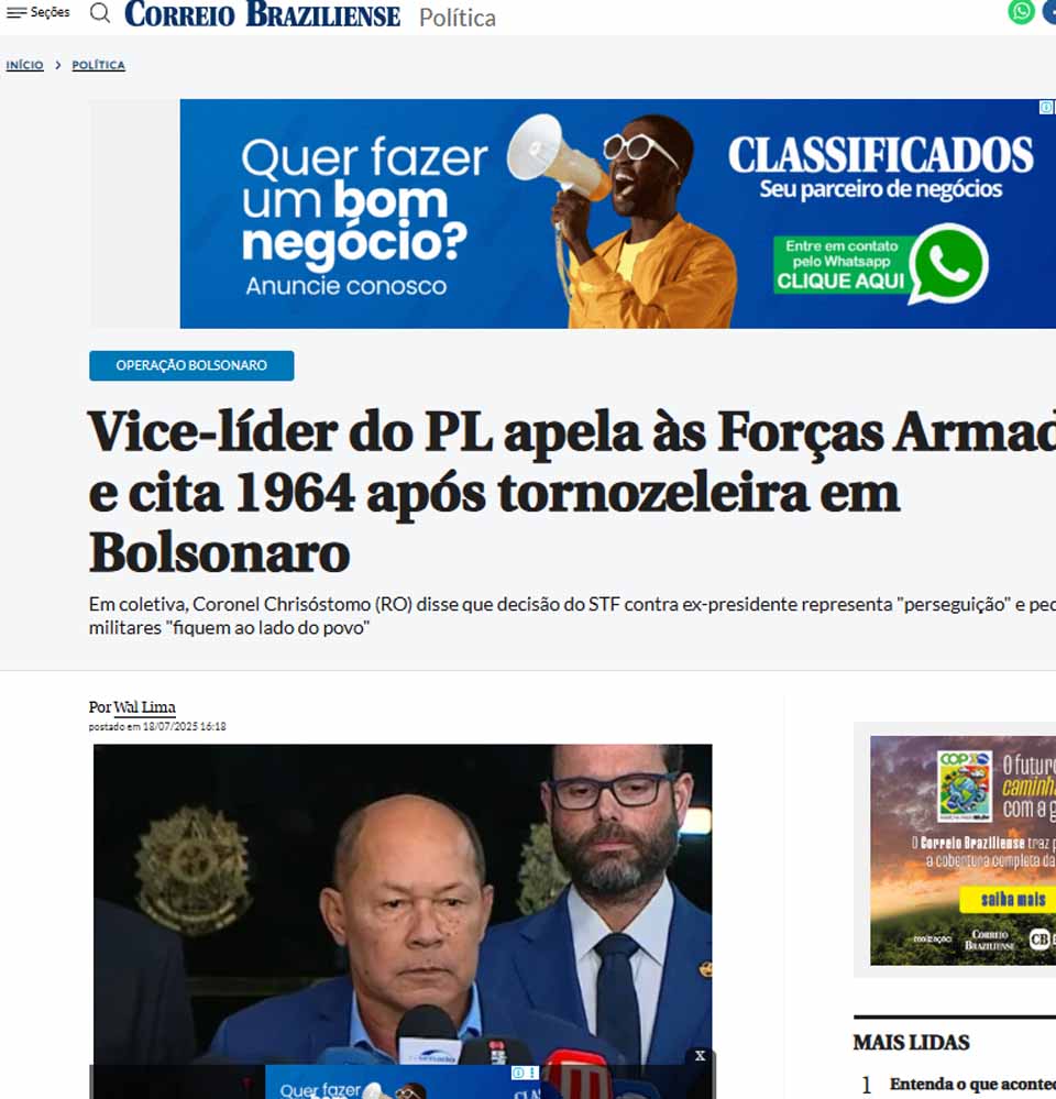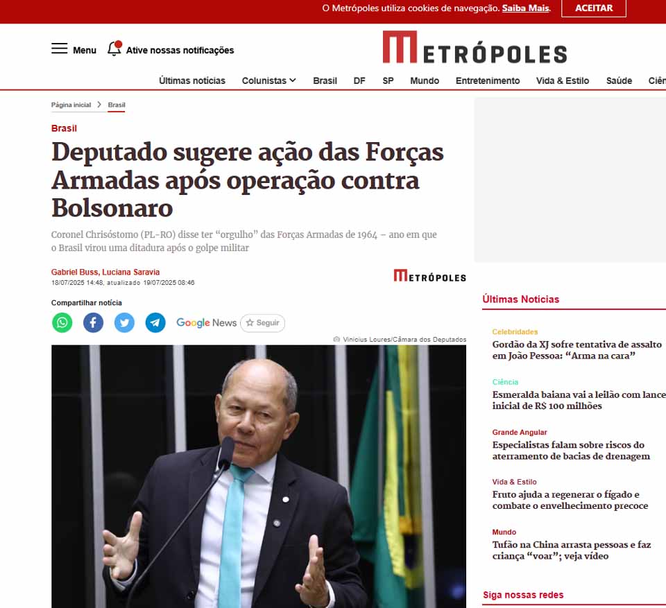 A tentativa de protagonismo acabou resultando em exposição indesejada. Chrisóstomo atraiu atenção nacional, mas não da forma como desejava. Ao tentar se posicionar como líder ideológico e porta-voz de uma suposta resistência conservadora, acabou se tornando alvo de crítica, ironia e desconforto entre os próprios aliados. O saldo político do episódio evidencia os limites de um discurso que busca resgatar símbolos autoritários em nome de uma legitimidade que já não encontra mais eco na institucionalidade democrática.