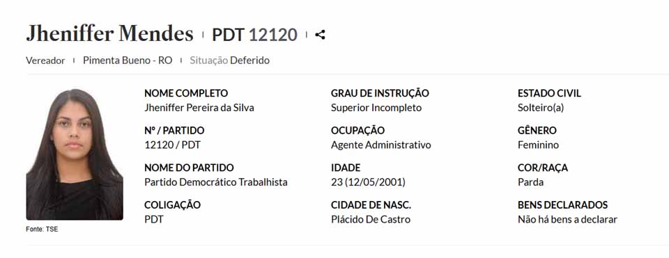 Porto Velho, RO – A Justiça Eleitoral de Rondônia, por meio da 9ª Zona Eleitoral de Pimenta Bueno, julgou procedente uma Ação de Investigação Judicial Eleitoral (AIJE) proposta pelo Ministério Público Eleitoral (MPE) e reconheceu a existência de fraude à cota de gênero na candidatura de Jheniffer Pereira da Silva ao cargo de vereadora nas eleições de 2024. A decisão, assinada pelo juiz Wilson Soares Gama em 14 de julho de 2025, cassou o Demonstrativo de Regularidade de Atos Partidários (DRAP) do Partido Democrático Trabalhista (PDT), anulou os votos recebidos pela sigla no município e declarou a inelegibilidade de Jheniffer e da presidente municipal da legenda, Edna Primo Costa, pelo prazo de oito anos.