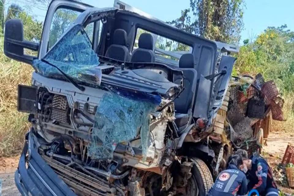 A colisão envolveu uma carreta e um caminhão graneleiro da Secretaria Municipal de Agricultura e Meio Ambiente, na rodovia RO-408, entre as Linhas C2 e C6, no trecho conhecido como Curva da Castanheira, saída para o município de Buritis.