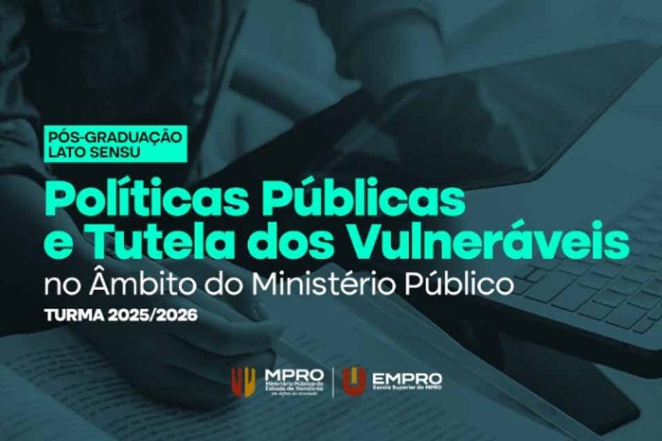 A Escola Superior do Ministério Público (Empro) anuncia a abertura das inscrições para a 2ª Turma da Pós-Graduação em Políticas Públicas e Tutela dos Vulneráveis no âmbito do Ministério Público. As inscrições estarão abertas no período de 28 de julho a 21 de agosto de 2025 e o curso terá início em 24 de setembro de 2025, na sede da Empro, em Porto Velho.