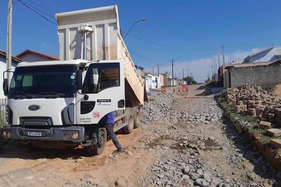 As obras incluem reforço da base com pedra rachão e aplicação de material estabilizado com cimento, especialmente em pontos com solo mais sensível. Além disso, está sendo revitalizado o bloqueteamento das vias, um método que oferece maior resistência, durabilidade, além de ser antiderrapante e de fácil manutenção.