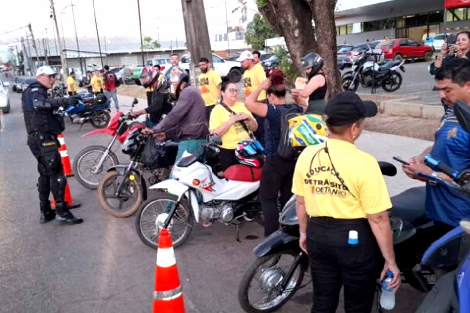 A Semana Nacional de Prevenção de Sinistros com Motociclistas começou na sexta-feira (25) e segue até a próxima quinta-feira (31), com atividades em diversos municípios. A abertura aconteceu no Terminal Rodoviário de Porto Velho e contou com a participação ativa da população. A mobilização foi organizada pelo Departamento Estadual de Trânsito (Detran-RO), por meio da Escola Pública de Trânsito.