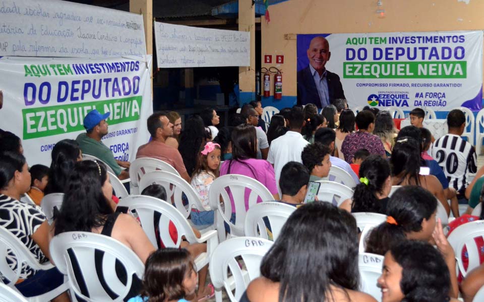 Durante a solenidade, o deputado Ezequiel Neiva anunciou novos compromissos com a educação do município. Entre as ações previstas estão a aquisição de móveis novos, computadores de última geração, notebooks para os professores, além da troca dos bancos da escola e do refeitório.