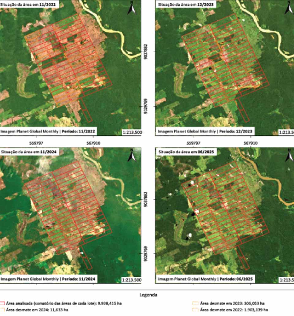 Durante a apuração dos fatos, ficou comprovado que os ora denunciados, visando lucro, associaram-se para a prática de graves crimes ambientais no interior da Estação Ecológica Soldados da Borracha, unidade de conservação de proteção integral criada em 20 de março de 2018. Para tanto, fraudavam contratos de compra e venda, omitindo deliberadamente os reais compradores, fazendo constar nomes de interpostas pessoas (“laranjas”), com a finalidade de elidir eventual responsabilidade civil, criminal e administrativa (multa) dos seus líderes e reais beneficiários.